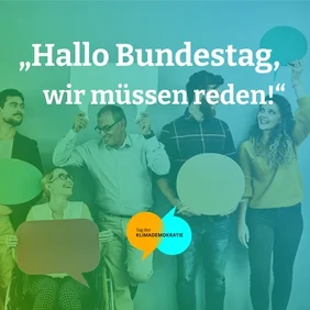 „Hallo Bundestag, wir müssen reden!" Unter diesem Motto lädt GermanZero gemeinsam mit Together for Future und der Bürgerlobby Klimaschutz einmal im Jahr zum "Tag der Klimademokratie." Ziel ist es, Bürger:innen und Bundespolitiker:innen in den Dialog miteinander zu bringen, um über gemeinsame Wege aus der Klimakrise zu sprechen.